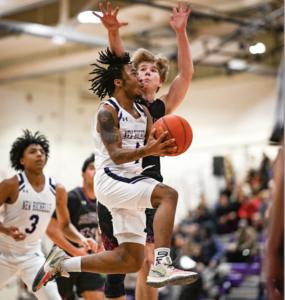 Kas Mirza, who scored 25 points for New Rochelle—12 of which came from behind the arc—said that, given recent history, the Huguenots couldn’t get too comfortable against a Scarsdale team known for its ability to battle back from early deficits.