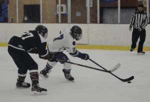 Despite missing nine players on Saturday night, the Huguenots wasted little time putting pressure on the Titans, controlling the puck and jumping out to a 4-0 lead by the middle portion of the second period. Senior goalie Sam Glusker—who finished with 20 saves on the night—said the lion’s share of the credit was owed to New Rochelle’s young skaters who stepped up in the absence of a few senior leaders.